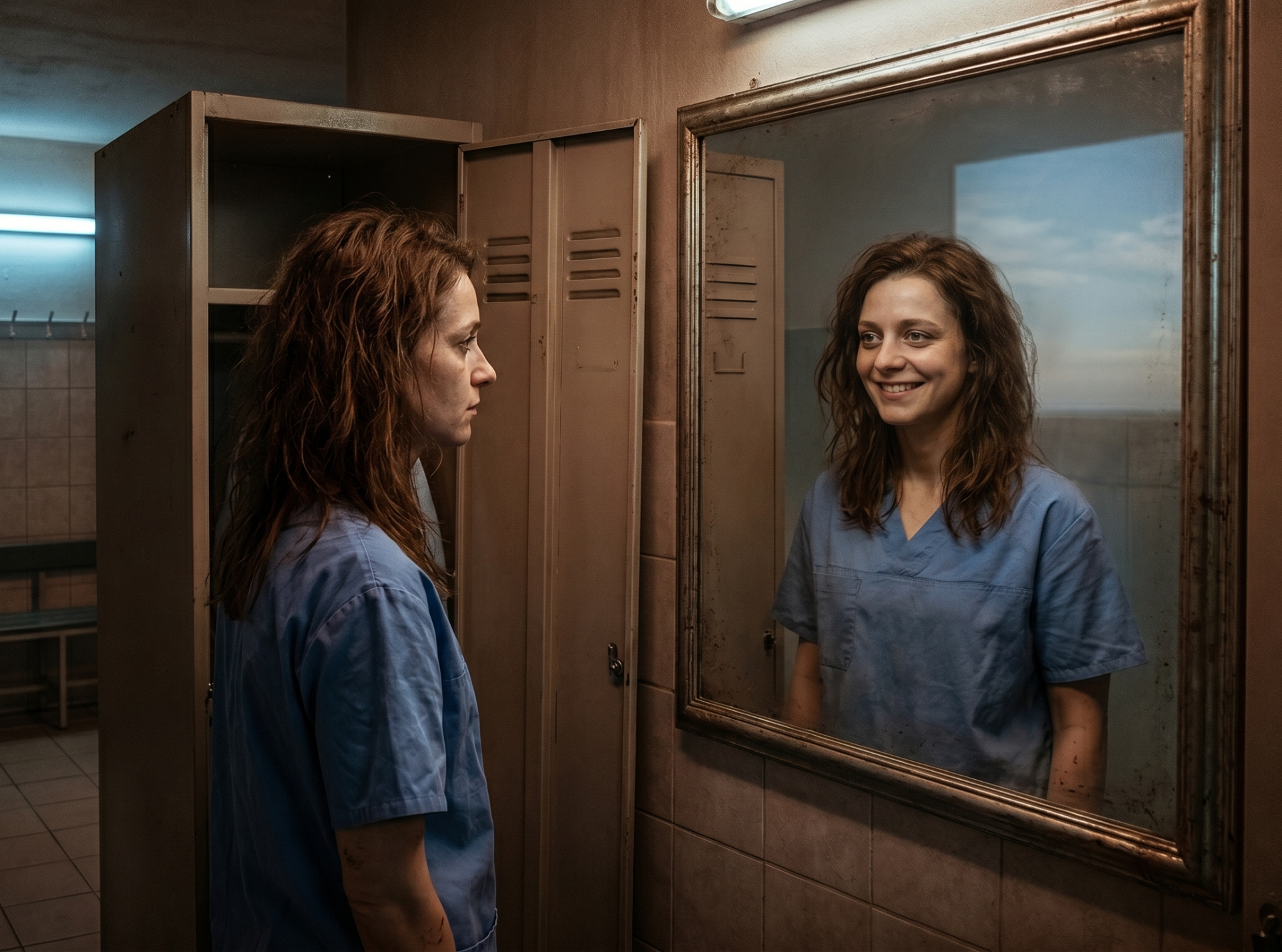 Klára si zrovna dělala u zrcadla culík. Byla už převlečená z uniformy zdravotní sestry do civilu.
